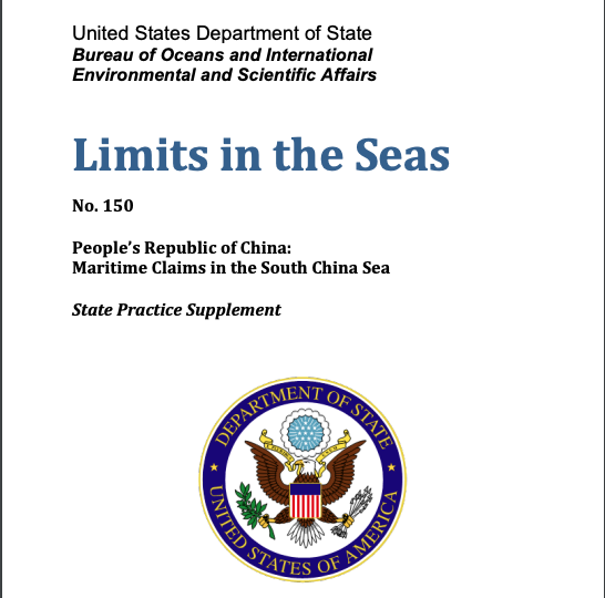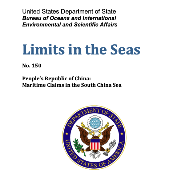 Đầu tháng Giêng năm 2022, Cục Đại dương, Môi trường Quốc tế và Các vấn đề khoa học thuộc Bộ Ngoại giao Mỹ đã công bố Báo cáo số 150 về các ranh giới biển với nội dung phân tích các yêu sách biển của Cộng hoà Nhân dân Trung Hoa ở Biển Đông.