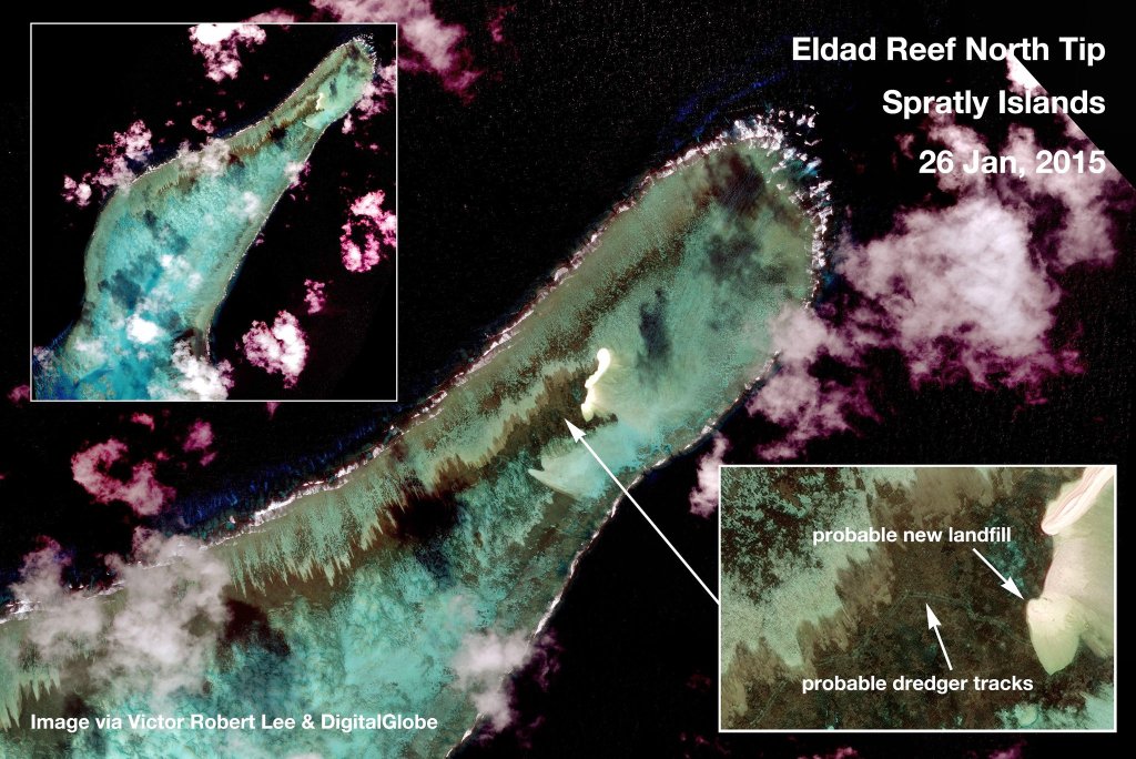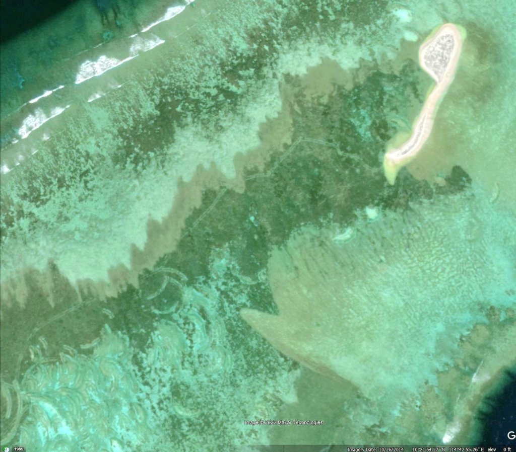 Một bài viết trước đó vào năm 2015 của Ethan Rosen, một nhà nghiên cứu và phân tích địa chính trị của China Six, nhận định rằng kích thước và hình dạng của dọi cát không đổi trong các tấm ảnh được chụp từ tháng 01/2012 đến tháng 11/2013. Cuối năm 2014 sang đầu năm 2015, kích thước của dọi cát tăng lên một chút, gợi ý có thể có một dự án nạo vét bồi đất ở đây ở mức độ thấp như những gì tình báo Philippines khẳng định vào tháng 6 năm 2014.