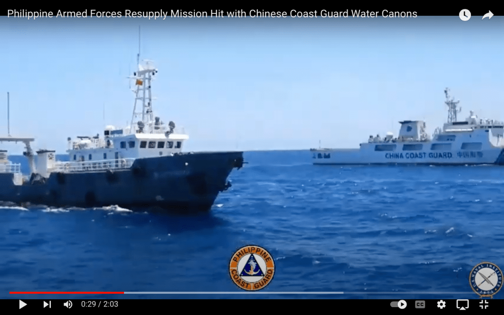 Thước phim được công bố bởi Cảnh sát Biển Philippines về việc Trung Quốc sử dụng vòi rồng