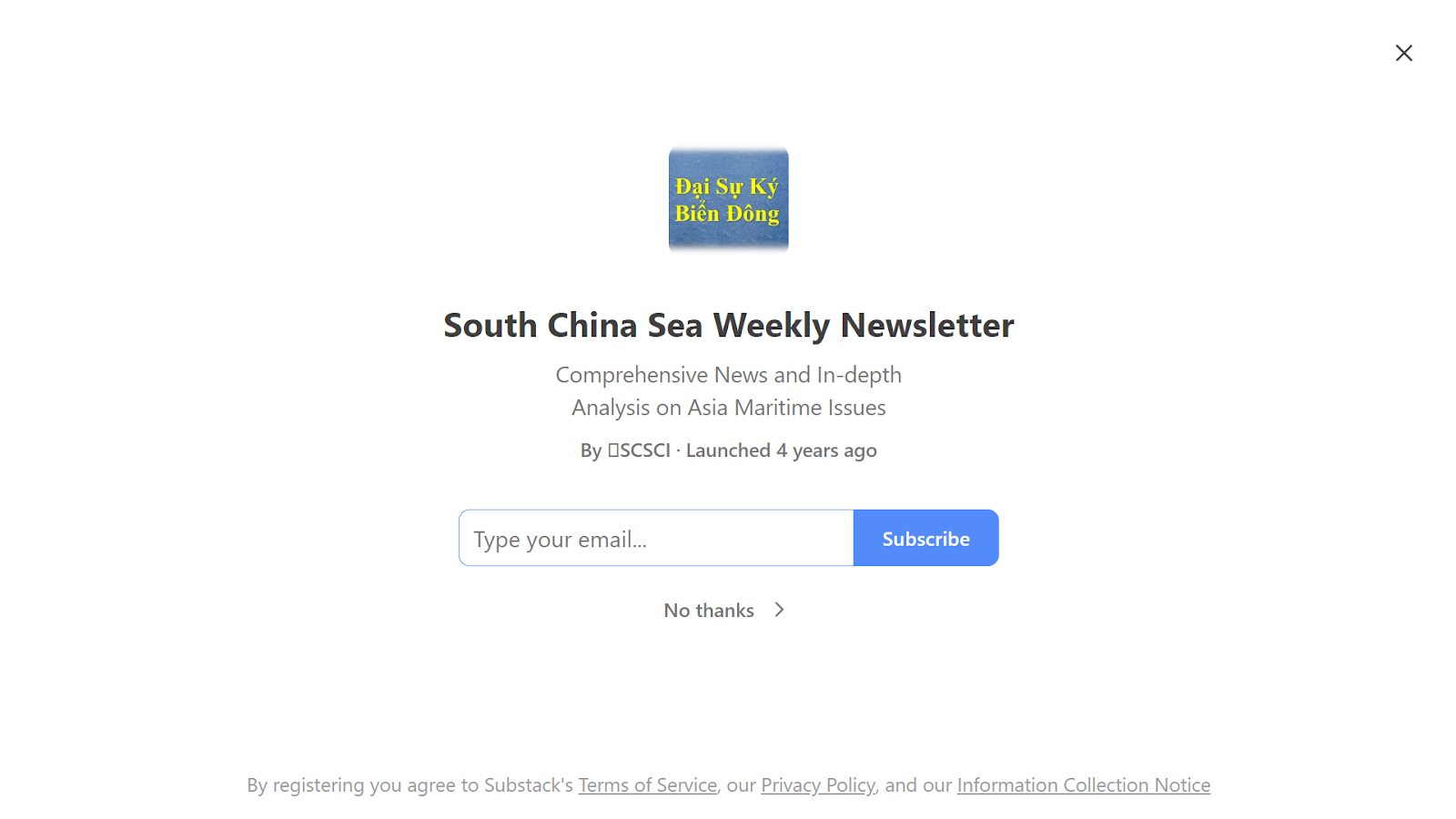 Dự án cũng có một địa chỉ khác trên trang Substack tại địa chỉ: https://scsci.substack.com/ để dành cho những độc giả không muốn theo dõi qua WordPress. Substack cũng cung cấp công cụ theo dõi trực tiếp qua địa chỉ email, và quý độc giả có thể nhập địa chỉ email của mình trực tiếp ngay từ thời điểm bắt đầu truy cập vào địa chỉ này và lựa chọn “Subscribe” (Đăng ký) để bắt đầu theo dõi. Tương tự như công cụ trên WordPress, quý độc giả cũng sẽ nhận được bài mới của Dự án được gửi tự động và trực tiếp vào địa chỉ email của mình. Quý độc giả có thể sử dụng hình ảnh chụp màn hình sau để làm theo hướng dẫn: