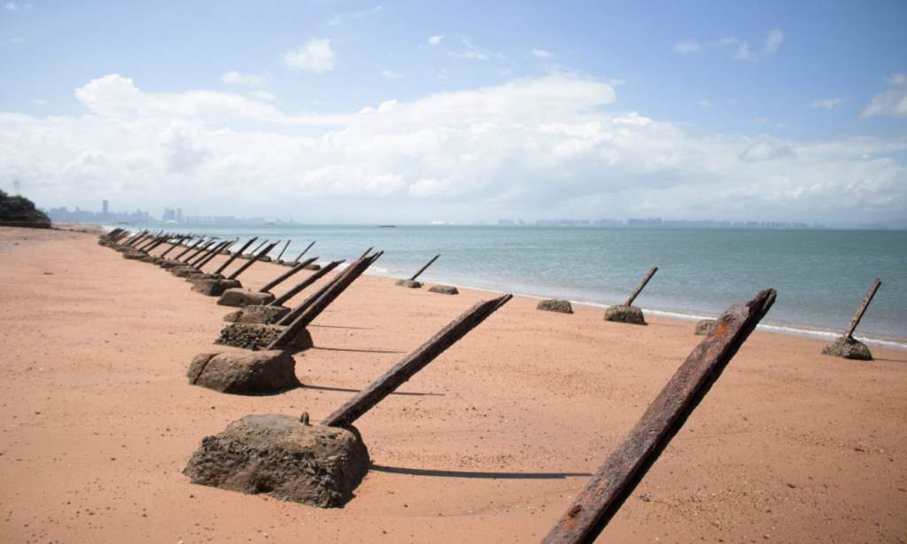 Rào chắn chống đổ bộ trên bãi biển Kim Môn đối mặt với Trung Quốc. Ảnh: Chi Hui Lin/The Guardian
