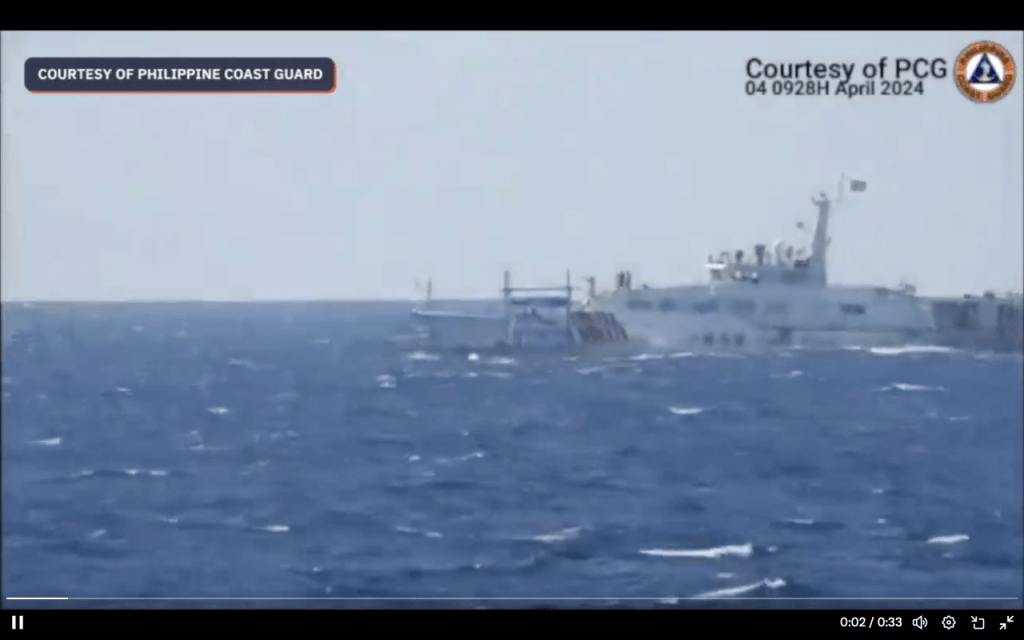 Tại vùng biển tranh chấp ở Biển Đông, cuộc đối đầu giữa Trung Quốc và Philippines ngày càng gia tăng. Manila cáo buộc tàu Trung Quốc liên tục quấy rối các tàu thuyền Philippines bằng vòi rồng và bằng các phương pháp khác như cố tình va chạm.