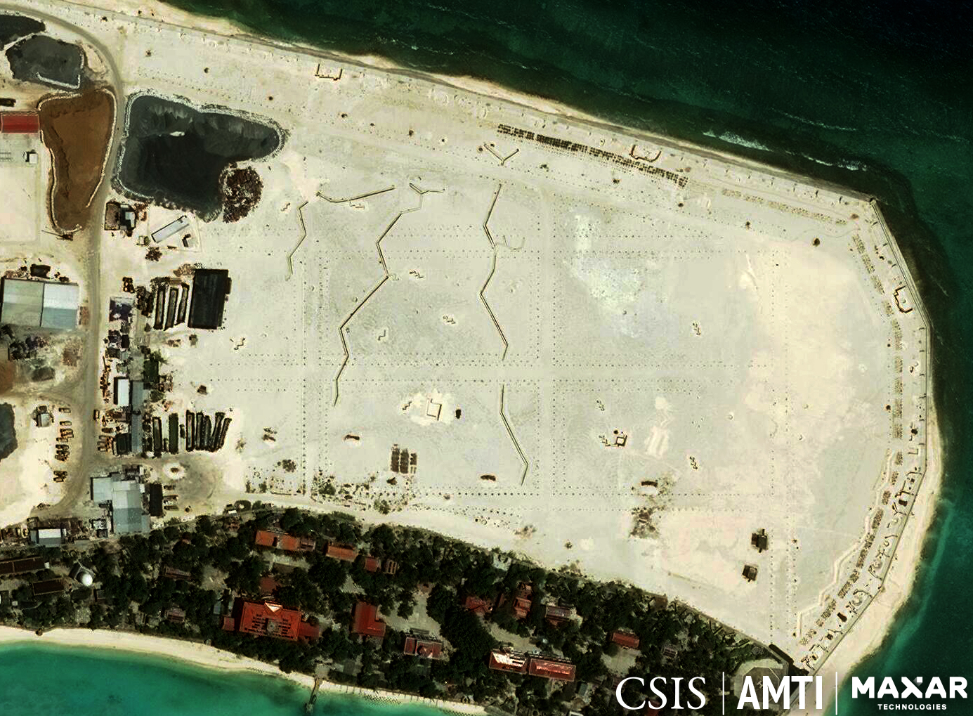Các chiến hào và công trình phòng thủ ven biển điển hình của các tiền đồn ở Trường Sa của Việt Nam có thể được nhìn thấy đang được tiến hành ở một số thực thể. Và đã xuất hiện các sân bay trực thăng tạm thời trên nhiều thực thể đang mở rộng, bao gồm Đá lớn, Đá Lát, Đá Tiên Nữ và Đá Nam.