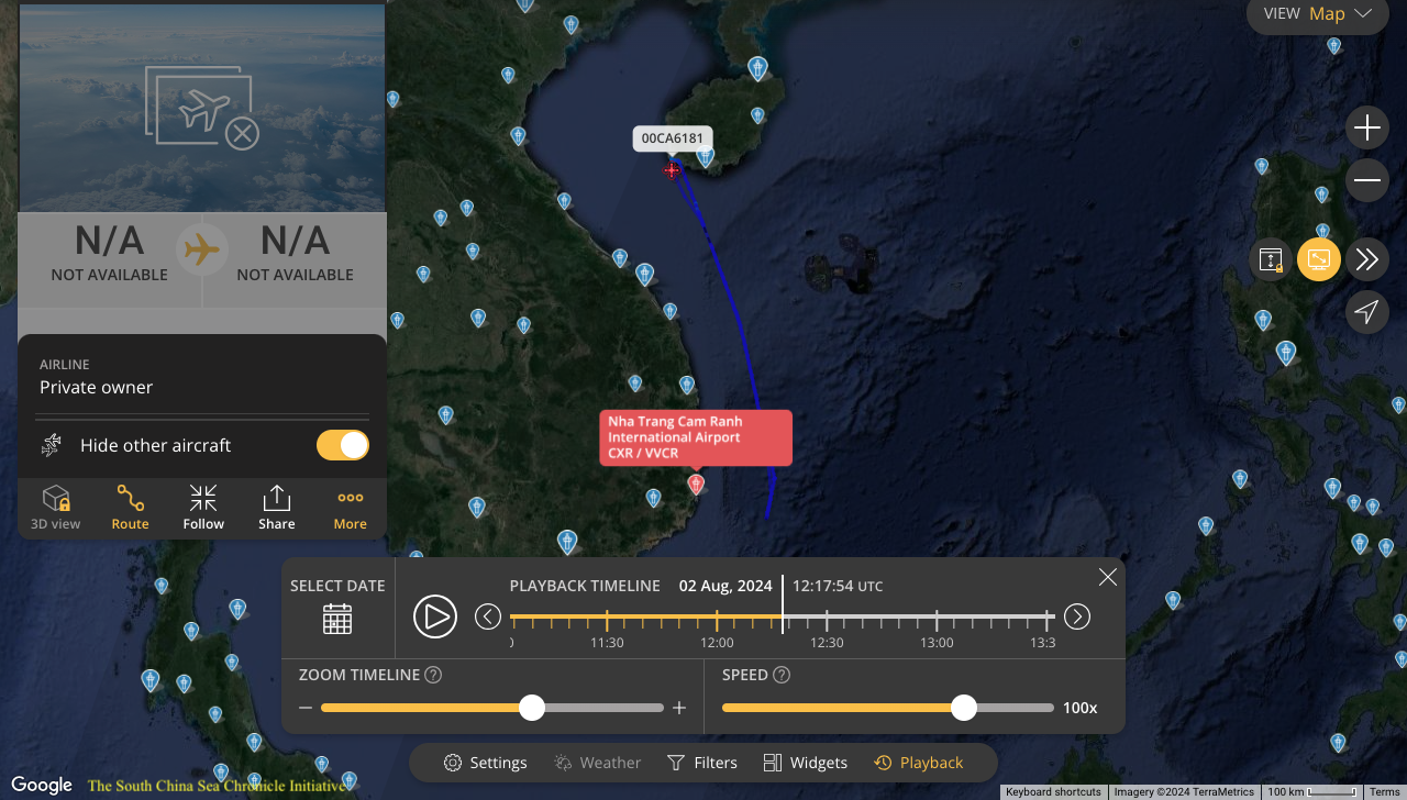 Một phát triển mới trên vùng đặc quyền kinh tế của Việt Nam. Trung Quốc lần đầu tiên hiển thị việc triển khai máy bay không người lái quân sự tiên tiến WZ-10 vào vùng đặc quyền kinh tế Việt Nam. Trước đó, WZ-10 lần đầu tiên hiện diện ở Biển Hoa Đông mới chỉ tháng Năm vừa rồi. Ảnh: Flightradar/Dự án Đại Sự Ký Biển Đông