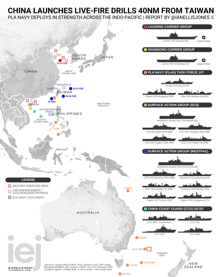 Ngày 26 tháng 2: Trung Quốc tập trận ở khu vực chiến lược ở Eo biển Đài Loan