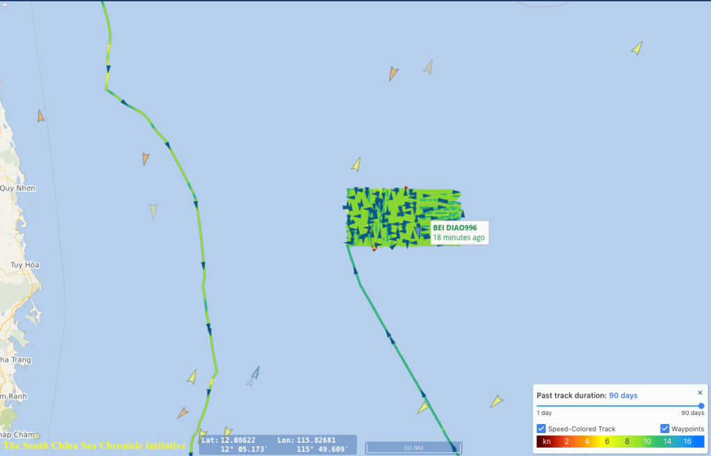 Bắc Điều 996 vẫn đang hoạt động trong vùng đặc quyền kinh tế và trên thềm lục địa mở rộng của Việt Nam theo mô hình mạng lưới dày đặc. Ảnh: Hoàng Việt Hải/Dự án Đại Sự Ký Biển Đông.